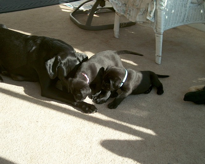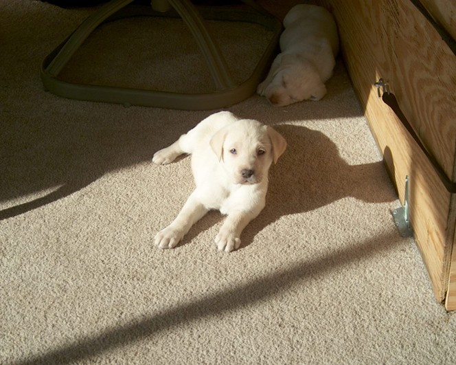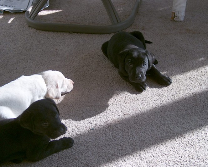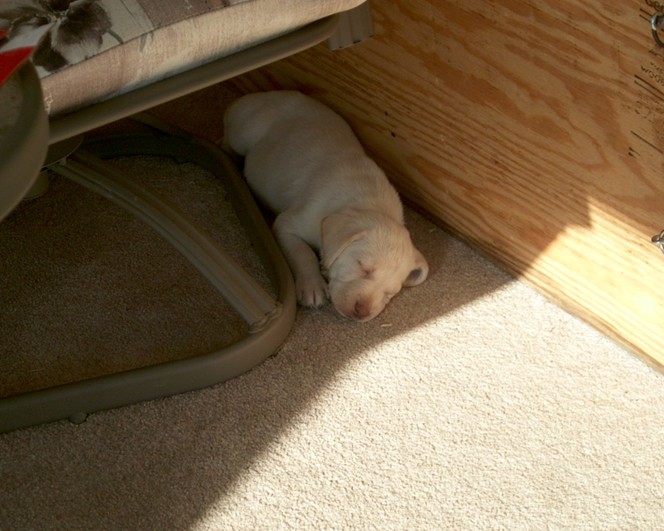 I'm guessing by now most of you are getting bored of my Lab Puppy postings. Well, they will soon be starting to head out the door after this weekend, even though there are still 6 of these cutties left for sale. I let them all out of their container today for some R & R and snapped a few pictures.