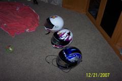3 full faced HJC helmets. sizes are xxl, large and large 60.00 ea with electric shields
