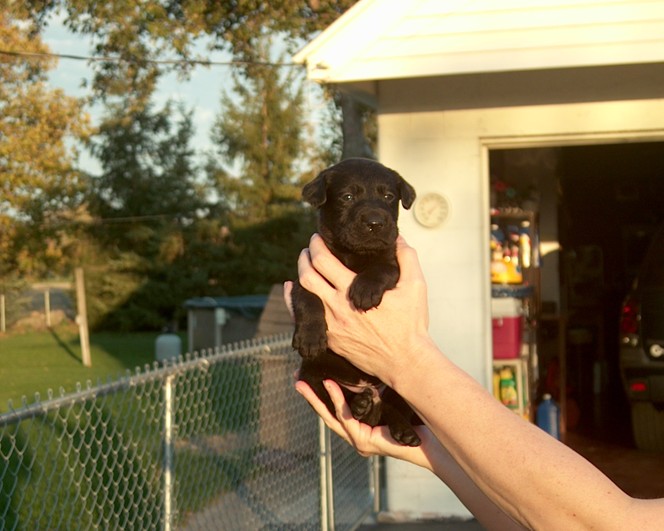 Remember that (one of 12) 4 week old 3 pound Labradour cutie My wife held up for a picture in our driveway late in October. Well, him Ma and Dad are doing fine and he is now a 17 week old, 47 pound monster. It also appears him and dad have become part walleye.