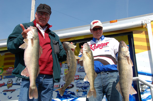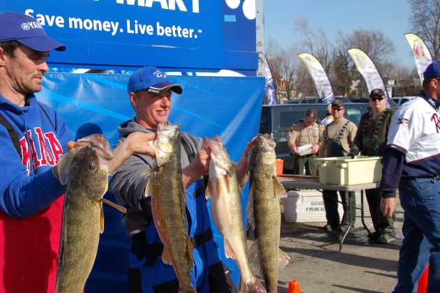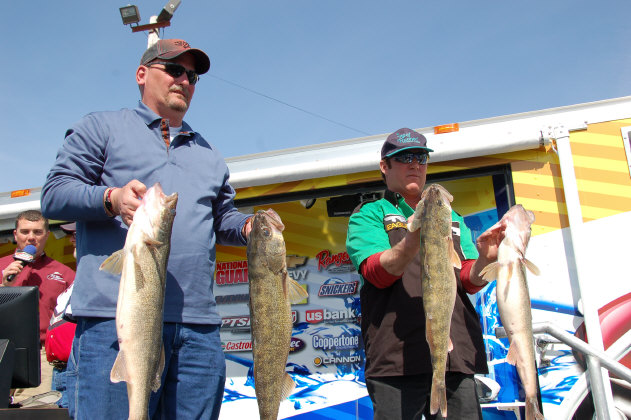 Location: Rhinelander | The bite was spotty, but some big weights came in despite the wind and muddy conditions. Several baskets in the 40# range lead the way, and when all the baskets were weighed, Mike Kuzdzal holds the lead over David Frey by ounces at 41.50 and 42.13 respectively. KEVIN MICHNICKI is in 3rd back only a little over a pound, CHAD SCHILLING, DAN STIER, ROBERT HENTON, NATE PROVOST, PETE HARSH , TOM BRUNZ, and JASON KERR round out the top ten going into day two. Conditions tomorrow promise a better bite according to many of the Pros. Warmer water, clearing conditions, and less wind will make for a great weigh in on day two, so join us in the Interactive Live Leader Board room at about 2:45 PM central time tomorrow afternoon. Attachments ---------------- DSC_0174.JPG (95KB - 120 downloads) DSC_0014.JPG (89KB - 120 downloads) DSC_0031.JPG (83KB - 107 downloads) DSC_0047.JPG (89KB - 114 downloads) DSC_0103.JPG (92KB - 107 downloads) DSC_0114.JPG (93KB - 110 downloads) DSC_0189.JPG (100KB - 122 downloads) | ||