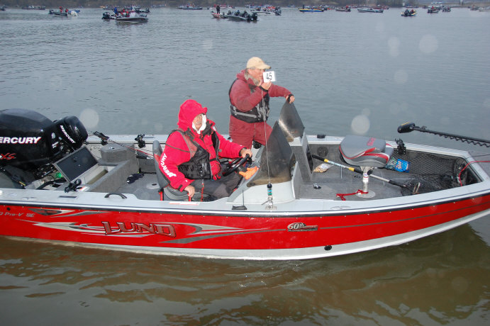 Member Posts: 1382 | Rain Showers High 55°F Cloudy. A 20 percent chance of rain showers in the afternoon. Highs in the mid 50s. Southeast winds 5 to 15 mph. ---------------------------------------------------------------------------------------- Wet and cool conditions are still hanging on in Pierre SD this morning, but the winds have diminished to 5 to 15 for the day, making for better travel conditions for the Anglers. The mood was upbeat this morning, as most of the Pros expect the bite to remain consistent. The most common adjustment this today seemed to be, " I won't throw back any close to 18" this morning, that cost me yesterday." The top ten anglers all feel they need a minimum of 8.5# to hold position. Live bait rigging was the technique on deck in most of the boats photographed this morning, but all methods are taking fish on a consistent bite at Lake Sharpe. Many will be running the 45 to 55 miles to West bend and beyond today, so fuel is again a consideration. Join us in the Live Interactive Leaderboard this afternoon at 3 PM, in the rain from Pierre South Dakota for the final Weigh in before the cut to the top ten. Attachments ---------------- ECI8.JPG (66KB - 149 downloads) DSC_0056.JPG (87KB - 153 downloads) DSC_0033.JPG (76KB - 149 downloads) DSC_0030.JPG (88KB - 147 downloads) DSC_0018.JPG (63KB - 151 downloads) DSC_0001.JPG (51KB - 142 downloads) DSC_0021.JPG (56KB - 140 downloads) DSC_0020.JPG (54KB - 146 downloads) DSC_0011.JPG (78KB - 149 downloads) DSC_0019.JPG (92KB - 150 downloads) | ||