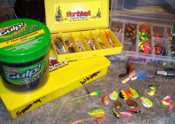 Tipping jigs with maribou tails, crawler pieces, minnows and variations of the NEW "Gulp Alive" products should be a good start of ideas to the angler.