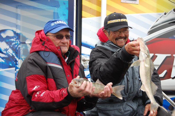 Ted Takasaki took second with a solid performance today. Ted said his new Verado powered Lund, sporting a 60 gallon fuel tank, allowed him to make his run in as much a hurry as he needed no matter the wind and waves and get back in with plenty of fuel to spare. Ted was using bottom bouncers and crawlers to put his Eye's in the Lund.