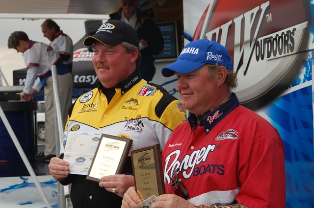 Member Posts: 1040 Location: Stevens Point, WI | "Rough" was the word of the day by the anglers fishing tournament #2 in the FLW League Michigan division Saturday. With only a little more than half of 100 boat field in participation today, it seemed that the weather didn't stop the anglers from catching there fish. Chris Chesney and co-angler Gene Witt took home first place with a weight of 21lbs. 12oz. and a combined check for $6275 for the win. Almost all anglers were doing one of two things, trolling crankbaits or pulling crawler harnesses in 14-21ft of water. Anglers also noted that the larger fish were nonexistent today unlike during there practice periods where many anglers said fish up to 11lbs. were present. Jonathan Rohde and Matthew Buck netted 21lbs. 6oz. to claim second place and a combined check for $2888. Third place went to Keith Strauss and Robert North with a weight of 20lbs. 9oz. and a combined check $2250. Dan Boileau and Jay Gordert claimed fourth place with a weight of 20lbs. 5oz. While Andrew Miller and Terry Krampe nabbed fifth place with 20lbs. 3oz. to round out the top five. Congratulations to Mike Eiden who was the top placing angler driving a 07' or newer Toyota Tundra. Mike claimed a $1000 check in doing so. Attachments ---------------- FLW144.JPG (95KB - 120 downloads) FLW168.JPG (89KB - 115 downloads) FLW3 (2).JPG (94KB - 114 downloads) FLW50.JPG (72KB - 115 downloads) FLW170.JPG (58KB - 130 downloads) FLW179.JPG (86KB - 128 downloads) FLW184.JPG (83KB - 129 downloads) | ||