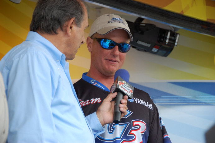 Winds to 30 MPH and more and showers in between partly cloudy sessions buffeted the boats about on Cass Lake this afternoon, and the bite did exactly what the pros said for those able to hold under the tough conditions. There was some movement in the field, but the top twenty wasn't much of a surprise. One fish made the difference for many over the three days of the event, as did just a small amount of weight even in consistent baskets.