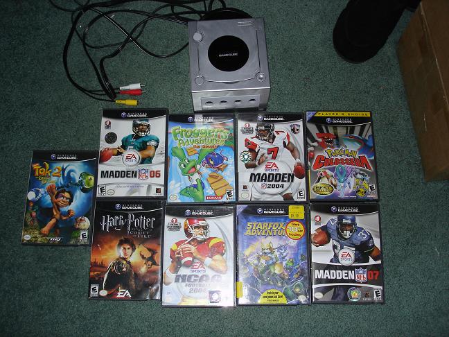 Purchased 2 years ago for christmas, nice shape, comes with: Pokemon colosseum, Madden 2007-2006-2004, Froggers Adventures-the rescue, Tak 2-staff of dreams, Harry Potter and the goblet of fire, NCAA football 2004, comes with one controller and memory, asking $90 or best offer, [email protected]