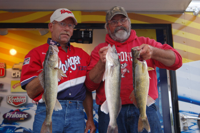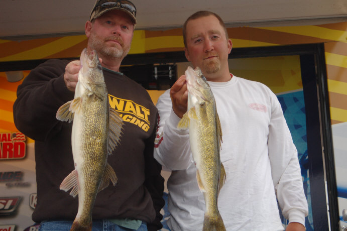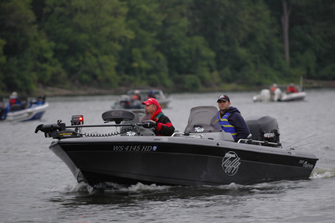 Member Posts: 2445 Location: Fremont, Wisconsin | Nice shot in pic number 4 of the Tuffy and our very own walleye first EYELUNKER, Ritch shelley, By the way, that boat has a winning legacy on the FLW, hope he hits the gold rush today. | ||