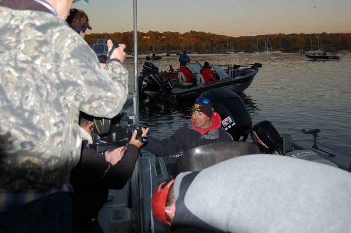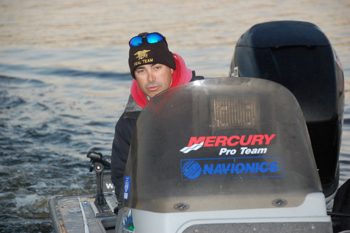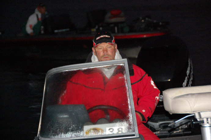 Day 2 of the PWT Lowrance/Optima pro-am dawned with even chillier temps. Day 1 leader and Lund/Mercury pro Bruce Mirabella heads out today with 27.52lbs. and a lead of 6.90lbs. over veteran Nick Johnson with a total weight of 20.62lbs.