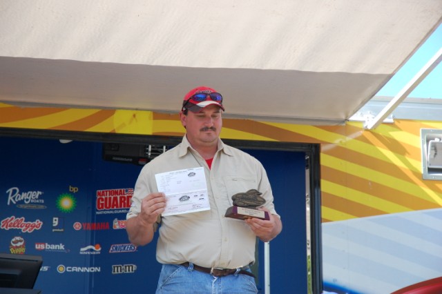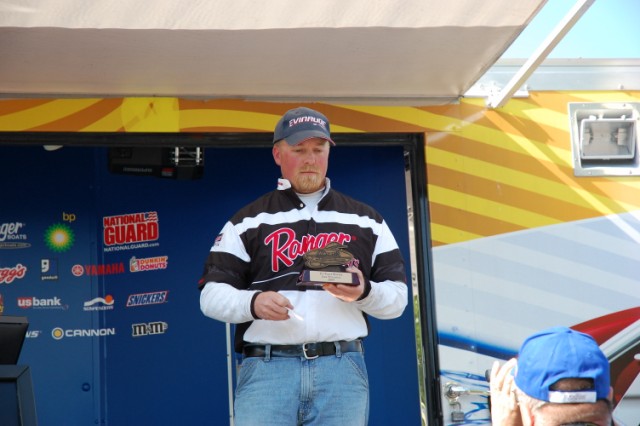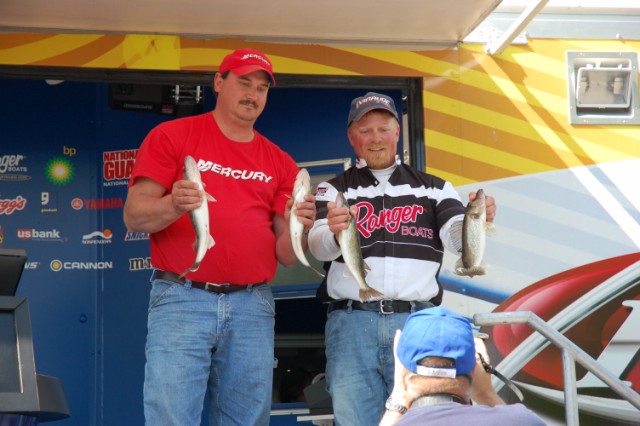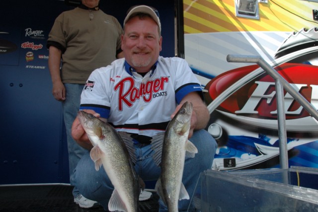 Location: Rhinelander | Nicolas Schertz weighed the only limit brought to the scales today and took home the win weighing 7.04 pounds, followed by veteran Glen Chenier who weighed 3 fish for a weight of 6.04, just one legal behind the leader. The rest of the field weighed either 2 or 1 fish, so the bite was definitely tough after the huge cold front moved through yesterday, postponing the Tournament because of high winds until today. Most of the fish were caught rigging, pulling cranks deep, or jigging between 2' and 30', so the fish were definitely scattered.
