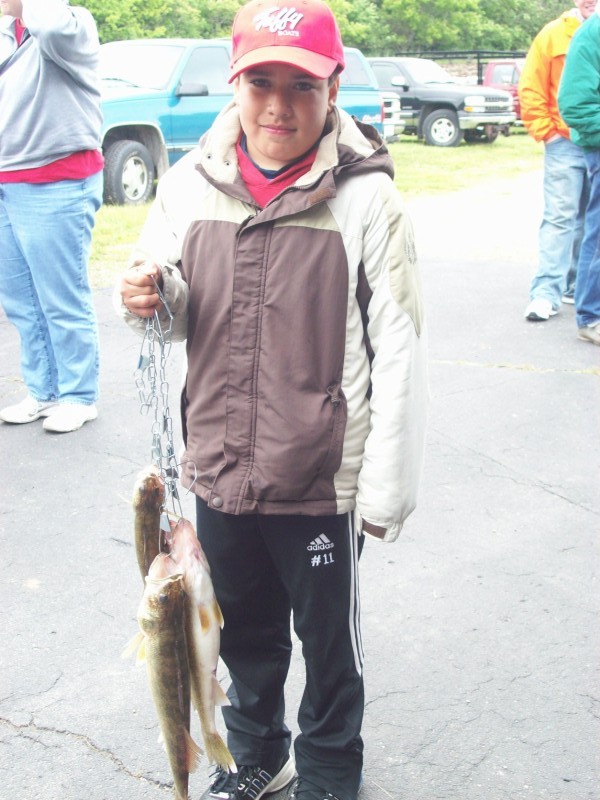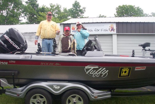 On Sunday, June 7th, 16 boaters took out 16 kids on Lake Winnebago for a morning of fishing. I was paired up with a youngster named Victor, and his guardian Theresa. Before we got started, I told them they needed the proper headgear, and presented the Tuffy Hats you sent. All the others ooh’d, and clapped at their good fortune. We trolled crankbaits and Victor caught a bunch of whitebass, 3 really nice walleyes, including a 20 ½”. When the fishing was done, we all had a great lunch of Brats and Hot Dogs. The kids all piled into my Tuffy 1890 for a photo, and then door prizes were handed out. Victor proudly wore his hat, and told the crowd how much fun he had. His smile made the day.