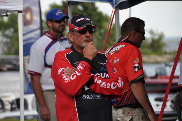 Local pro Jeff Nuechterlein of Fremont, WI. came to the scales with a 14 pound, 15 ounce bag to add to his day one catch of 11 pounds, 9 ounces, giving him a total weight of 26 pounds, 8 ounces for the first two days of the fourth and final FLW regular season event.