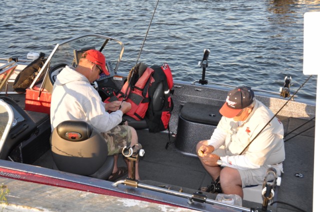 Brian Deffner said he had his weight by 9:30am yesterday morning and his fish have been in the area for now a couple weeks. He also said that he feels the wind won't affect them but is a bit worried about what a cold front may do to them. Deffner felt that if he can go out and execute his plan and does it mistake free, he'll be alright.