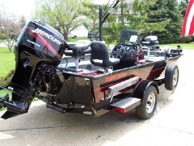 New User Posts: 4 | Was not able to try props I bought the boat from a dealer in Northern Wisconsin where I bought my first two from. Drove 800 miles to pick it up....I like to be loyal to people that have always treated me fair everyone deserves to make a buck and I like to give my money to people who I trust and feel good about and now they will help you out in a pinch. Attached are pics of my first two Tuffy's and one more of my new one. If my memory serves me I thought I was able to do about 48mph with the 2-stroke 90 Mariner. I quess I'am just curious about getting more speed and wondering if the motor is mounted in the wrong hole because my son bought a boat that weights twice as much and he can do 54mph....its a Nitro bass boat with a 115 Merc. Opti Max. I think I will go to a local dealer here in Cleveland and have him raise the motor one or two holes and try a 13.25 x 19 ss prop. I think that is what I had on my old Tuffy but I can't remember.... Thanks Change often and keep twitching Rich Attachments ---------------- Black Tuffy 4.jpg (54KB - 234 downloads) Black Tuffy 4.jpg (54KB - 307 downloads) | ||