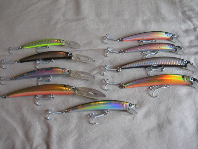 | I have three lots of crankbaits. Top picture is of 7 Kopper Live Target perch baits. One or two have been very lightly used, but have no scratches. The rest have never been used. I have the original boxes for five of them. $55 shipped in lower 48 Second picture is of 8 Yo Zuri HardCore baits #LB90SP. One or two have been very lightly used. The rest have never been used. No boxes for these. $55 shipped in lower 48 The bottom picture is of Yo Zuri Minnows. two F8s, three F7s, one DD 3/8, one DD 7/8, and two DD 9/16 $55 shipped in lower 48 Attachments ---------------- IMG_0958.JPG (166KB - 177 downloads) IMG_0961.JPG (161KB - 180 downloads) IMG_0964.JPG (166KB - 173 downloads) | |||