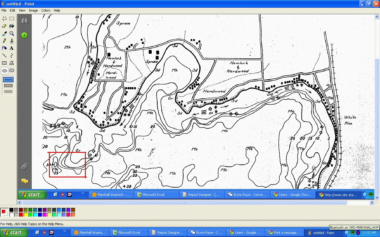 Member Posts: 625 Location: LaCrosse, WI | Here's the first place I'd try. You have a gravel point, dropping off into deep water with a pretty strong transition. I'd set up a tip up on top of the gravel point and one on the deep end of the drop off, then jig everywhere in between. The nice thing about this location is that you seem to have several different types of structure to fish in a small area. I would expect fish to move up onto the flats to feed randomly throughout the day, and slide back down to the depths. You might be surprised how often the tip up on the top of the flat will go off. I'd look for a 15-20' shelf in there for the daytime bite with my top tip up. I'd expect the mid day fish to be hold up in the 30' hole surronded by 25' of water, but move up into the low to mid 20's randomly. I'd spend the most of my day jigging 18-25' but still spend some time in the deep stuff. I'd use something like a #5 jigging Rapala with a minnow head to see if I could get some lookers. That's the first half of the battle. I'd also go with a 1/4 oz rattling flyer spoon with a minnow head if they come in and look at the rap but won't hit. Looks like a good area, I might have to make a trip up some time. Attachments ---------------- TJ1.gif (184KB - 199 downloads) | ||