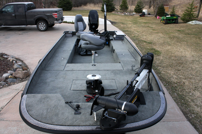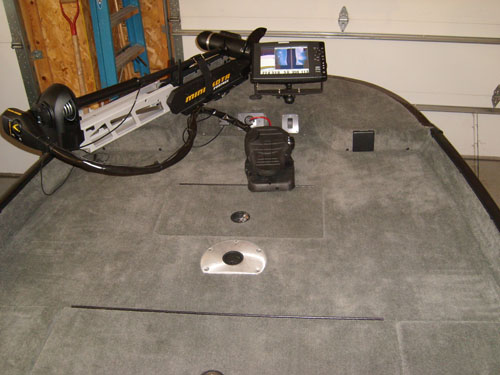 I told myself if I switched to a smaller boat the only thing that was going to be different was the speed. I wanted something that was easy to take the boys out in, yet still allow me to fish competitively if desired. Some of the electronics I rigged this with are an 80lb Fortrex 24v trolling motor up front. For now the only gps/finder is an 1197c that I have rigged so i can move from transom to bow. Each location has a ram ball mount and proper cabling to allow moving. There is a transom mount transducer and one on the trolling motor too. To top it off I found a site offering 20% off anything in their store, so I bought an 8' Pro Power Pole. After it's all said and done, I feel that this boat is actually going to fish better than my 21' boat. Maybe not in the speed department, but in presentation and layout not even close. Other benefits are a lot lighter load, one less axle on trailer for things to go wrong and easier access to small crappy access lakes.