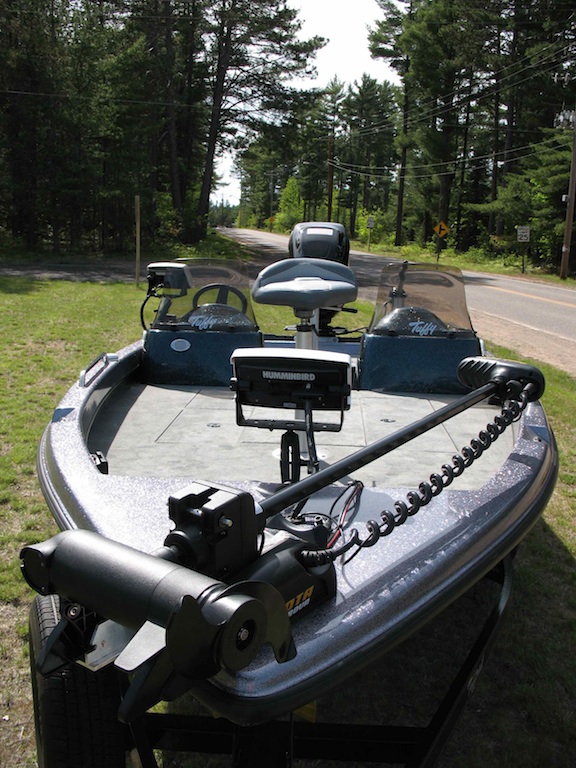 Member Posts: 11 Location: Akron Ohio | What great pictures of a terriffic boat! My new 1700 should be arriving soon and these pictures you guys put up are driving me crazy. One tip for you: I just attended a sonar seminar by Bruce "Dr. Sonar" Samson. He suggested to owners of larger sonar units bow-mounted on ram mounts, such as yours, to bend them down while running. Two ram mounts will hold them in position, but one mount won't,. Then when you get to your destination just bend them back up in viewing position. | ||