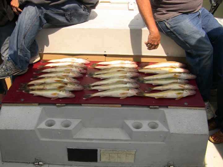 Made a 13 1/2 mile one-way run this morning on a hunch and to an old waypoint. And If this keeps up I'm heading back to Lindys Marina over on the East side of the Bay next year. I call this mess of fish from this morning "Bombs Over Coreyon Bar". Sorry boys that's all I can give you. I need this spot to save some face with the other charter boats at LBM, for at least the short term.
