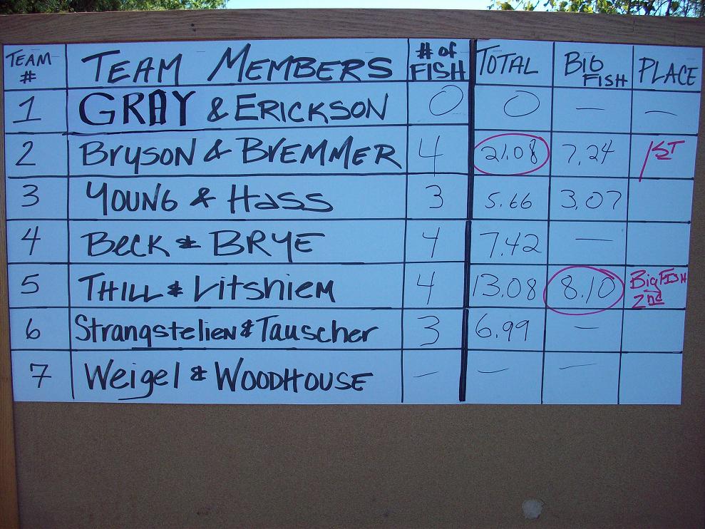 | Message Subject: MMWS Trempealeau Standings 9-12-2010 Team Bryson / Bremmer WIN with 21.08#s!!! | |||