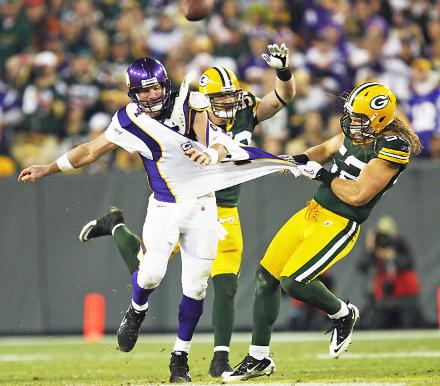 Brett Farve will see Clay Matthews from behind and will see the beautify golden locks of hair and confuse him for a woman.