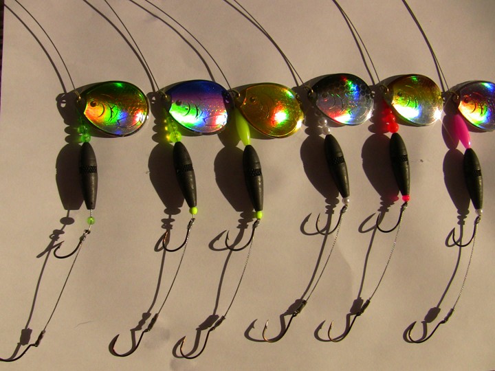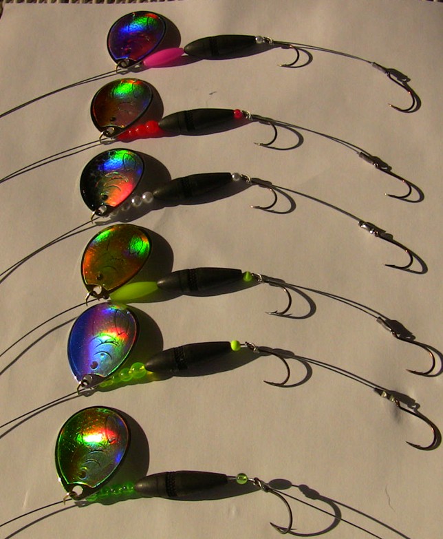![]() Member Posts: 2680 Location: Essexville, MI./Saginaw Bay. | Gathering enough of the components to build just one of the versions of my new invention I have in mind, I thought I'd share at least the preliminary pictures and ideas with you guys. And that idea was/is to create a quality Casting/Trolling Harness of sorts. Something that can be both trolled with it's own weight contained in the body of the lure and/or counted down, casted and retrieved repeatedly in shallow or deep water. With it having enough flash, sound, vibration and scent (via real or Gulp Crawlers attached) to make it an all-in-one lure. So here is the first prototype of what I'm calling Capt. Dan's "Clacker Harness". Looking at this lure and it's design, some/most will not see it's hidden functionality or the evil genius behind it's components and design. That's because half of what it does is hidden until you actually cast and retrieve it. And the components I used to make it are the key. After I finish the whole design line and the different colors and blade combinations I plan on building, I'll explain and share the whole process and ordering information for these special components with everybody. But suffice it to say right now, that this rig is the most expensive one I've ever thought about and put together. The blades alone, shown in this design are premium, silver plated blades built by Lakeland Tackle, covered by Tommy Harris's holographic designs stickers and spray painted with a coat of clear by Tommy, and goes for about .50 each at dealers cost. But after much testing with other blade types, they are part of an intricate design that only works when put together with the other special components I'm using. Ya, I know, what the hell is he talking about and will this thing catch walleyes? That part of course I don't know or will know till next summer. Just trust me, I'll lay out all the building plans, all the components used and the lures secrets when I get the rest done. The catching part will remain the only fly in the ointment for now. Edited by walleye express 11/7/2010 2:42 PM Attachments ---------------- IMG_0729.JPG (97KB - 131 downloads) IMG_0732.JPG (117KB - 130 downloads) IMG_0736.JPG (83KB - 135 downloads) | ||