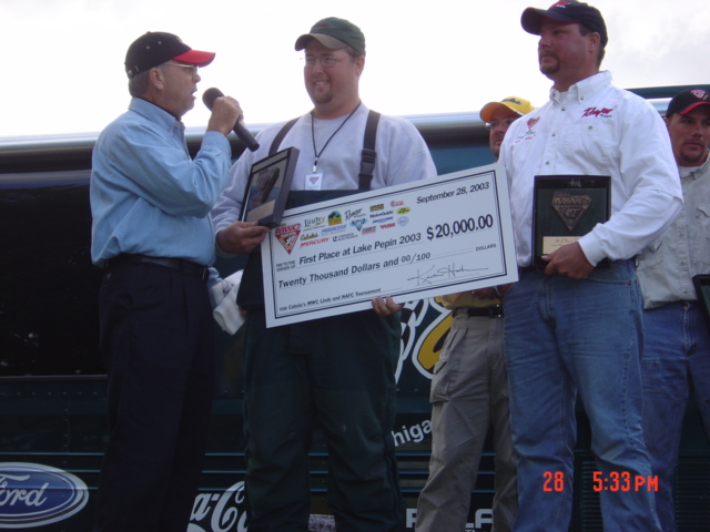 | Congratulations to the Lake City Siewert Boys. Casting pink crankbaits into 3 feet of water is so wild! Bet I'll be buying a jar of pink paint next time I'm in a bait shop. Just hope your winnings is enough to buy the whole town a few drinks - with so many volunteers helping us contestants - they sure deserve it! And more cheers for the husband and wife team of Glen and Carol Chenier of Gladstone Michigan. These people toughed it out to win Team of the Year Honors in fishing all 4 MWC Tournaments. Good Job! Also, congrats to Tommy Dierks, who was awarded the portable "woofwoof" toilet award. Look closely at the picture with the guy in camoflauge. He is holding the award, complete with a detachable urinal! Attachments ---------------- Winners.jpg (137KB - 143 downloads) Cheniers-Team of the Year.jpg (152KB - 125 downloads) portabletoiletaward.jpg (143KB - 149 downloads) | |||