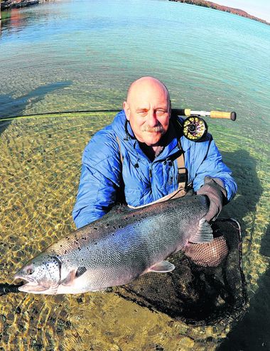 The record Atlantic salmon, caught by Indiana resident Tom Aufiero, weighed 26 pounds, 12 ounces. Aufiero, who caught the fish while fly fishing with a shrimp pattern, released the fish after weighing it.