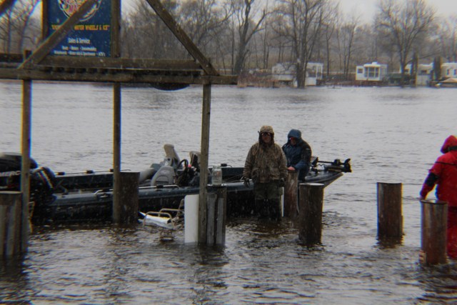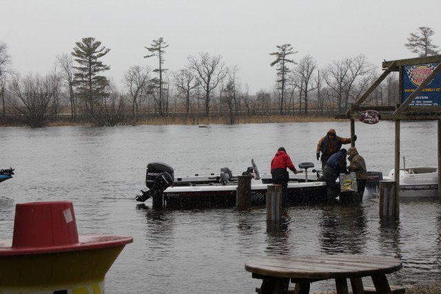 Location: Rhinelander | REPORT: PRE WEIGH IN. The winds were really tough today on the Wolf driving snow, rain, and sleet at up to 30 MPH sideways along the surface of an over-flood-stage Wolf River. 75 teams hit the water none the less, and the bite from early weigh in indications, was very good Several weights over 16# for five have been turned in already. First flight was due in by 1:30 PM. The dock, which is usually a couple feet above the water even when the river is high, was totally under water, so one team member had to literally 'wade' across the dock to the shore. Brutal. Watch for more soon... Attachments ---------------- IMG_2185 [640x480].JPG (63KB - 176 downloads) IMG_2189 [640x480].JPG (82KB - 160 downloads) IMG_2209 [640x480].JPG (78KB - 173 downloads) IMG_2223 [640x480].JPG (76KB - 179 downloads) IMG_2241 [640x480].JPG (73KB - 172 downloads) IMG_2269 [640x480].JPG (80KB - 156 downloads) | ||