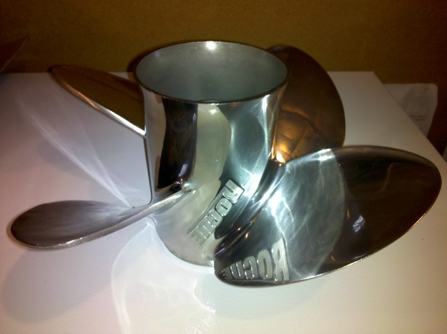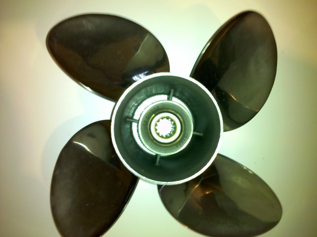 For sale NIB Evinrude E-Tec 4-Blade Prop for 40-115 small gear case models. This #763965 prop is 13 1/4 x 15 and was briefly used on my 90hp tiller. It is in perfect condition and cost me over $500 with tax.