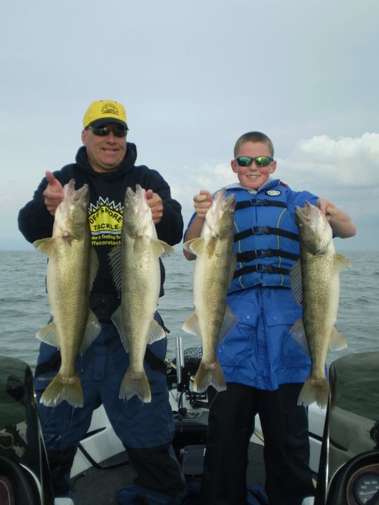 Member Posts: 181 Location: Oshkosh, Wisconsin | I had just purchased a new camera and did not take pictures when we caught the fish as it was raining most of the time. As you can see we are in our rain suits and heavy paraka's. Yes we did catch fish on Reef Runners but the Tony Tiger blade caught many fish. I posted this pic so anglers could see the combo we were running as prior to this year I never knew what a Tony Tiger blade was. When I get back to Erie, I plan on running this combo again. | ||