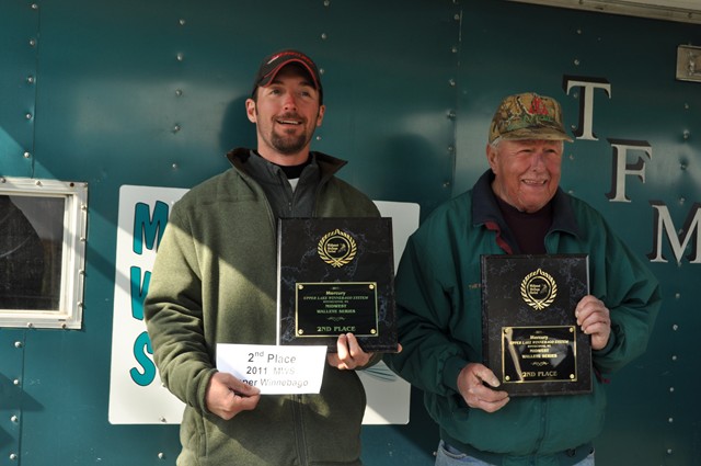 Location: Rhinelander | Kevin and Bob O'Connell took top honors at the MWS in WInneconne today taking home first place trophies and a check for $3700.00. They caught their fish trolling bright colored Junior Thuntdersticks in the river, and were still searching for a 'kicker fish' when the tournament day ended. O'Connell's weight of 12.08# was enough to take first by nearly 2#. Second went to Christman and Leanna, weighing in 10.56 for a check totaling $2000.00. Third went to Leitl and Hoehnen, who weighed in 8.82 and cashed a check for $1100.00. Fourth went to Adler and Dempsey weighing 8.38 for $850.00, and fifth went to Van Schyndel and Schyndel at 8.32 for $700.00. The winds were very tough out there today, and most of the anglerd talked about the ride back and poor boat control as a result. Fish were caught locally in the river, up to Fremont, and in the lakes using tactics from vertical jigging, pitching jigs, casting cranks, and trolling cranks. Big Fish went to Tim and Nicki Pizzi at 4.54#. Video and images soon... MWS coverage is brought to you by The Reel Shot/JJ Keller Fishing Team and WalleyeFIRST tournament coverage is brought to you by Lund Boats! For more information and the final leaderboard, visit: http://www.fishtfm.com www.fishtfm.com Attachments ---------------- DSC_0201 [640x480].JPG (121KB - 165 downloads) DSC_0049 [640x480].JPG (123KB - 166 downloads) DSC_0087 [640x480].JPG (94KB - 170 downloads) DSC_0165 [640x480].JPG (100KB - 152 downloads) DSC_0166 [640x480].JPG (99KB - 154 downloads) DSC_0164 [640x480].JPG (94KB - 160 downloads) DSC_0170 [640x480].JPG (93KB - 165 downloads) DSC_0192 [640x480].JPG (99KB - 161 downloads) | ||