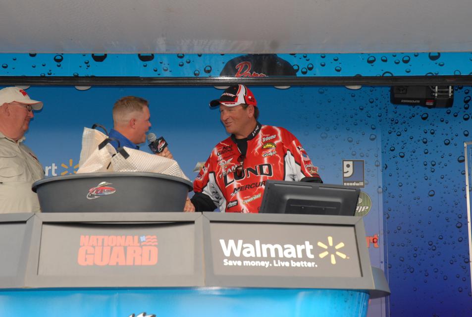 Member Posts: 34 | Day one certainly did not disappoint. There were a lot of 1-2-3 fish bags, but there were some real heavyweights brought to the FLW scales this afternoon. There were 5 lead changes, and 3 bags over 40 lbs. brought in. The weather actually calmed down and played to many of the anglers original strategies allowing them to fish the pattern they had intended. However, it was a tough bite for the majority of the 131-boat field. "Things started off pretty slow," Tommy Skarlis said. "I was able to fish my jigging spot, and managed a couple fish, but it was slow. So, decided to move and implement Plan B. I later realized that with the consistently warming water temps, the afternoon was the time to be on the best spots. We managed to catch two more keepers just before it was time to head to the scales. I know just what I'll be doing tomorrow." The Next Bite crew of Keith Kavajecz, Gary Parsons, and Chase Parsons did not disappoint. All three claimed Day 1 Top 10 spot with tremendous bags, Kavajecz sits in 5th with 38-8, G. Parsons holds down 2nd with 41-05, and C. Parsons is in 10th with 35-02. "Tomorrow is another day and its still anyone's ball game," Gary Parsons says. "I am on a good group of fish and know the winning limits are there, but with the threat of more severe weather, its going to be another grind of a day." The real story today is that of the angler currently holding down the number one spot. Dan Steffens of Oxford, WI and his Co-Angler, Brandon Finck of Jackson, MN brought in a whopping 42-15. "A few weeks ago, I was in an accident and was in the hospital for a while," explains Steffens. "I got out with enough time to begin pre-fishing for this event, but it was only due to the support of my fishing partner and my family. Taking the top spot today was an emotional high that I pray I can relive again tomorrow." Steffens refrained from sharing any information about tomorrow's game plan knowing he was on the winning fish. It will be exciting to see if he can manage another impressive bag as he did today. Tomorrow's take off is scheduled for 7 AM with weigh-in beginning at 3 PM that afternoon at Water Works Park in downtown Port Clinton. More pictures, video, and updates are sure to come. Stay tuned! Day One Top Ten 1st Dan Steffens 42-15 2nd Gary Parsons 41-05 3rd Jeff Graves 40-02 4th John Balla 38-15 5th Keith Kavajecz 38-08 6th Charles Robinson 36-08 7th Shawn Ritchie 36-07 8th Tom Keenan 35-07 9th David Kolb 35-06 10th Chase Parsons 35-02 Edited by THA4 5/12/2011 7:04 PM Attachments ---------------- Brian Keller.jpg (62KB - 168 downloads) Brumbaugh.jpg (68KB - 170 downloads) Crew waiting.jpg (92KB - 163 downloads) Fish going into bag.jpg (76KB - 170 downloads) Fish In box.jpg (56KB - 171 downloads) Steffens.jpg (78KB - 157 downloads) Tommy Fish.jpg (103KB - 156 downloads) | ||