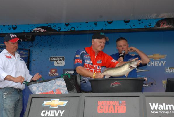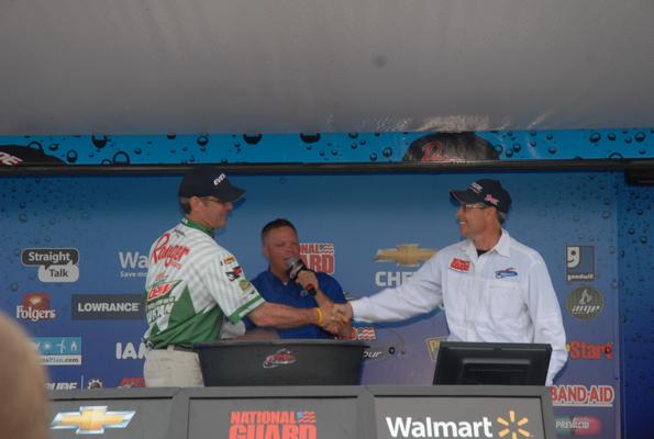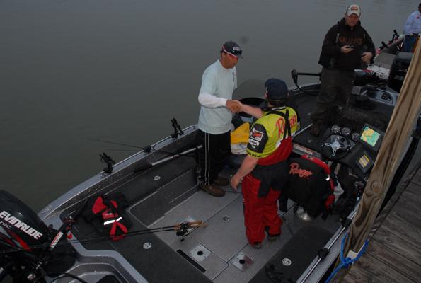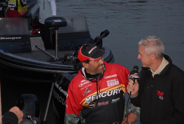 Member Posts: 34 | With weather conditions being a major factor in the tournament this week, last night certainly could have been much worse. For the remaining top 10 anglers, poorer conditions might actually improve their catch rate. Showers and thunderstorms passed through Port Clinton last night, but the temperatures did not change much and the wind has remained flat. Today's forecast calls for mostly cloudy skies and a 50% chance, or better, of scattered rain showers. Confidence this morning among the anglers remained high. "I know it sounds crazy, but I was hoping for even worse conditions," says Keith Kavajecz, currently in 3rd place. "Wind makes my spots especially good, but even with deteriorating conditions I am confident we will find the kind of fish we need to stay in the game." The majority of the boats were rigged to spend most of the day trolling, which has been a very productive tactic during this event. Crankbaits, planer boards, spinner harnesses, and jigs have all been key players, but The anglers do not expect to make any major adjustments as the patterns have been fairly consistent. "I have my spot all to myself and with the number of fish I have been marking on a regular basis, I am very confident the fish I need today will find their way into my boat," says Tom Keenan, currently in 2nd place. "The weather has kept this event interesting, but today's conditions are very conducive to how I plan to catch my limit. I don't let the money that is on the line affect my performance, however regardless of where I finish, I will break the one million mark in career earnings. That bench mark is something I am very proud of, but also humbled by. Today will be exciting." With members of the media and FLW interviewing every angler, the pressure to perform was definitely there. When asked, leader Jeff Graves says its all about the fish. "The money is exciting, but I'm out here to fish. I'll worry about a paycheck after the weigh-in is full," he says. The weigh-in this afternoon is at the same time, 3 PM, but the location has been moved. The Port Clinton Walmart will host the final weigh-in, but there will be a lot of other activities taking place. Stay tuned for further updates, images, and videos. FLW Coverage is Brought to you by The reel Shot/JJ Keller Fishing Team! WalleyeFIRST Event Coverage is Brought to you by Lund Boats! Attachments ---------------- Keenan.jpg (31KB - 249 downloads) Brumbaugh.jpg (31KB - 219 downloads) The Reel Shot.jpg (33KB - 220 downloads) Mt. Dew.jpg (34KB - 212 downloads) Morning hand shake.jpg (29KB - 218 downloads) Graves.jpg (30KB - 232 downloads) Interview.jpg (26KB - 248 downloads) Kavajecz Interview.jpg (29KB - 267 downloads) Kavajecz.jpg (34KB - 219 downloads) | ||