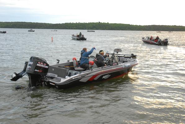 Member Posts: 34 | The bite definitely got better here on Leech Lake in Walker, Minnesota. More of the anglers weighed fish and the average bag certainly increased. That could be due to the conditions improving as the rain that was forecasted did not show up, or it could also be due to the anglers really pursing the bigger fish. Its cut off day and now is the time where you either go big or you go home. The top ten anglers were determined and the final day is sure to be a shoot out! "I expect my pattern to hold for the final day," says day one leader, Mark Courts. "We put together a very respectable limit today and I fully expect much of the same tomorrow. Unfortunately I was bumped down to third place, but the difference is minimal and the spots I am fishing are holding the winning fish. It will be close!" Day two leader, Kevin Carstensen produced an impressive bag and managed to nail down the first spot. He talked about the conditions improving and the weather being a primary factor in his success. But, interestingly enough, he noticed an interesting factor that was actually improving his catch rate substantially. We'll won't let the cat out of the bag yet, but I can assure you it is a surprising one! "As soon as the sun would come out, our bites would slow down drastically," Carstensen said. "We tried to time our efforts to coincide with traveling during sunny periods and keep our lines out when it was overcast. These fish are finicky on this lake, but if you can nail down their pattern you can really catch a bunch. I am confident in my spot for tomorrow, but its so close its anybody's ball game at this point." The final day take off will remain at the same place, the Walker City Park boat launch. The final weigh in will take place just up the road at the Northern Lights Casino at 3:30 PM. Tournament coverage brought to you by: Lund Boats and The Reel Shot/JJ Keller Fishing Team, and Mercury Marine. Attachments ---------------- Bro.jpg (44KB - 144 downloads) Crew Waiting to Weigh.jpg (46KB - 140 downloads) Carstensen.jpg (30KB - 124 downloads) Crowd.jpg (49KB - 121 downloads) Fish.jpg (39KB - 123 downloads) Kids.jpg (36KB - 126 downloads) Jason.jpg (47KB - 113 downloads) Lindner Speaking.jpg (30KB - 139 downloads) Pair of fish.jpg (45KB - 122 downloads) Parsons.jpg (40KB - 117 downloads) Pulling in.jpg (35KB - 122 downloads) Skarlis.jpg (49KB - 131 downloads) Takasaki.jpg (54KB - 129 downloads) View from above.jpg (45KB - 110 downloads) | ||