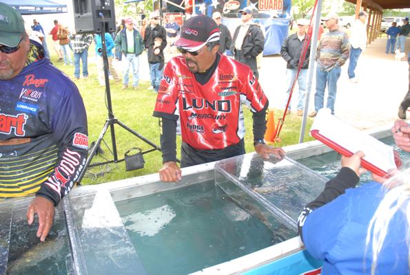 Member Posts: 34 | The bite definitely got better here on Leech Lake in Walker, Minnesota. More of the anglers weighed fish and the average bag certainly increased. That could be due to the conditions improving as the rain that was forecasted did not show up, or it could also be due to the anglers really pursing the bigger fish. Its cut off day and now is the time where you either go big or you go home. The top ten anglers were determined and the final day is sure to be a shoot out! "I expect my pattern to hold for the final day," says day one leader, Mark Courts. "We put together a very respectable limit today and I fully expect much of the same tomorrow. Unfortunately I was bumped down to third place, but the difference is minimal and the spots I am fishing are holding the winning fish. It will be close!" Day two leader, Kevin Carstensen produced an impressive bag and managed to nail down the first spot. He talked about the conditions improving and the weather being a primary factor in his success. But, interestingly enough, he noticed an interesting factor that was actually improving his catch rate substantially. We'll won't let the cat out of the bag yet, but I can assure you it is a surprising one! "As soon as the sun would come out, our bites would slow down drastically," Carstensen said. "We tried to time our efforts to coincide with traveling during sunny periods and keep our lines out when it was overcast. These fish are finicky on this lake, but if you can nail down their pattern you can really catch a bunch. I am confident in my spot for tomorrow, but its so close its anybody's ball game at this point." The final day take off will remain at the same place, the Walker City Park boat launch. The final weigh in will take place just up the road at the Northern Lights Casino at 3:30 PM. Tournament coverage brought to you by: Lund Boats and The Reel Shot/JJ Keller Fishing Team, and Mercury Marine. Attachments ---------------- Bro.jpg (44KB - 133 downloads) Crew Waiting to Weigh.jpg (46KB - 130 downloads) Carstensen.jpg (30KB - 114 downloads) Crowd.jpg (49KB - 111 downloads) Fish.jpg (39KB - 111 downloads) Kids.jpg (36KB - 114 downloads) Jason.jpg (47KB - 102 downloads) Lindner Speaking.jpg (30KB - 128 downloads) Pair of fish.jpg (45KB - 110 downloads) Parsons.jpg (40KB - 105 downloads) Pulling in.jpg (35KB - 112 downloads) Skarlis.jpg (49KB - 121 downloads) Takasaki.jpg (54KB - 119 downloads) View from above.jpg (45KB - 98 downloads) | ||