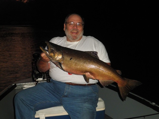![]() Member Posts: 2680 Location: Essexville, MI./Saginaw Bay. | I'm going to try and make this post as up-beat as I can, considering I lost my Labradour, my buddy and my devoted Hunting partner of 13 years today, while I was fishing with two great guys from my fishing board this morning. Jaybe and FishHinds had paid me for a river charter way last spring before I had my slip and fall accident. A walleye fishing trip was planed and then canceled because of my accident and surgery. Well, with a little prodding by Dave (FishHinds) I consented to transfer the walleye trip to a King Salmon River Casting trip. So we hastilly planed the trip for today, got up at 2:00 and 3:00am respectively, met in my driveway at 3:45am this morning and was casting on the river just prior to the official 7:00am daybreak time. Not seeing many cars at the ramp, I decided to motor upstream to a secret spot of mine that gets fished a lot, but only by people coming down river from the Indian Bridge launch. So I knew we had a good 3 hours (alone fishing window) before any drift boats would be showing up. It's a narrow little slot that funnels the Kings together as they run upstream. Kings hate being crowded and when they get forced into that position they get pissed. The more kings running up river, the more pissed they get. Bad for them, good for anybody casting. Neither Dave or Jaybe having much experience fishing for Kings, I gave both as much of a King River Casting overview as I could. Explaining what to expect and what to do on the river, while traveling in the truck to the river. And then again this morning on the river, I gave them helpfull instructions on just where exactly to cast and how to retrieve these T-Stick Juniors for the best results. And basically they did great. A few minor up-in-the tree snags and a couple serious stump snags, but not one lost a T-Stick junior today. Well, actually we did loose one but Jaybe actually snaged into it with his lure and got it back. So we anchored up just a little ahead of and off to the side of this slot and on my 8th cast near the top of the slot BANG, about a 20 pounder. Lift anchor and slide down an incriment. BANG, Dave hits a big female of about 22 pounds. I pull anchor and slide down an incriment. BANG, Dave hits a Male about the same size. Pull anchor and slide down an incriment again. And BANG, Jaybe hits one that I know is pushing 24 pounds and change. We move 2 more times and Dave hooks 2 more in that same hole, but breaks his in-the-boat streak and looses both Kings after a nice fight. I'm leaving out of course the awesome details of the fight these monsters gave each of us in the tight confines of this river. Long story short. We fish a stretch about 40 yards long. Go 4 for 6. By 9:30 the sun is getting hot and stifles the bite. Still lots of fish moving through the holes, but they simply were not as aggressive. End the day 4 for 10 with the last 4 being simply half hearted strikes versus the savage Grabs they were making early in the morning. Quite the emotional roller coaster for me today. But thank you Jaybe and Dave for the company on the river today. And thank you Lord for allowing me to share the last 13 years of my life with the best Labradour in the world. He will be missed and always loved when ever I think of him. ![]() Edited by walleye express 9/1/2011 7:07 PM Attachments ---------------- ![]() ![]() ![]() ![]() ![]() | ||