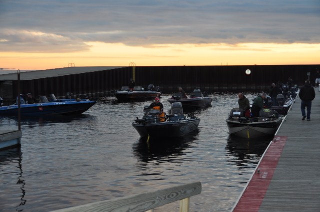 The morning dawned cool and partly cloudy under calm conditions as the MWS Championship field left Menominee Marina. The Teams WalleyeFIRST's reporter Keith Worrall talked with said the pre-fish was slow, but expectations are still high there will be some good weights come in.