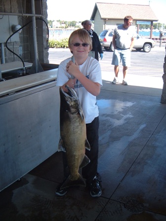 Member Posts: 921 Location: Manitowoc, WI | Took my 8 year old Kyle out for salmon for the first time. Things were slow trolling so I decided to cast for a while with him. First one he had on was a dandy but it took us right through the weeds and as I was trying to get the line free with the fish fighting and jumping on the surface, the line snapped. Then he tied into this 20 pounder. He fought the thing for at least 20 minutes. He was begging for help but I told him he was stronger than the fish and to just keep fighting it. After several laps around the boat, it finally tired out enough for me to net it. I didn't tell him I had the drag a little loose! Here his first salmon. The smile tells all. What a great day for him and myself. Attachments ---------------- DSCF2072.JPG (66KB - 156 downloads) DSCF2071.JPG (61KB - 165 downloads) DSCF2073.JPG (57KB - 145 downloads) | ||