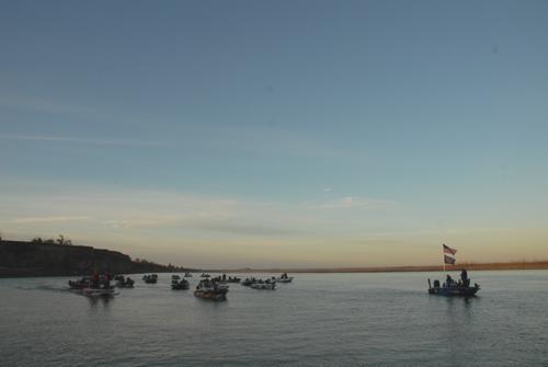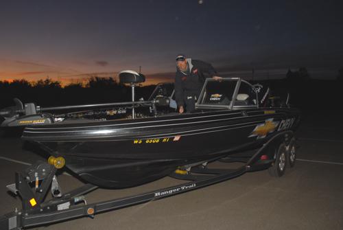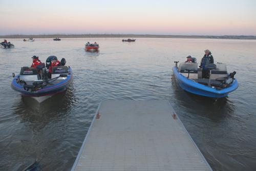 Member Posts: 34 | The forecast today for Bismarck is calling for clear skies, 77 degrees, and mild winds 3-5 mph. Match that with Day Three of the FLW Championship, falling water and intense walleye nuts beating the water to a froth and today's outcome will be interesting for sure. Someone will be on them, but the overall mentality seemed to be unsure as many of the good fish have come from one or two spots. "I have been finding my fish away from the pack," says 7th place sitter and National Guard Pro, Bill Shimota. "I have yet to catch a good kicker fish over 22 inches, but consistency is the name of the game. I am confident the fish I need to make the top 10 cut this afternoon are there, but I really need to get a couple big ones, I'm due!" The Missouri River Cluster yesterday may have taken its toll on the available fish in that location. There was drama, but fish were still caught and it can be assumed that anglers will be hitting that area again. If they want to stay in it they will more than likely need to find an alternative option. This stable weather makes the existing fish eat, but a weather front will force more fish to move in and take up residence on prominent structure. It will be an interesting weigh-in for sure! The weigh-ins will be held at 5 PM in downtown Bismarck at the Bismarck Civic Center. Stay Tuned for more updates this evening. WalleyeFIRST Tournament coverage is brought to you by Lund Boats, Mercury Marine, Lowrance and JJ Keller Fishing Team/The Reel Shot! Attachments ---------------- 1 & 2 leaving.jpg (23KB - 155 downloads) Field Ready to leave.jpg (27KB - 146 downloads) Good .jpg (23KB - 155 downloads) Good Backing in.jpg (26KB - 170 downloads) Good Taking Off.jpg (22KB - 142 downloads) Jason Prepp'n.jpg (17KB - 144 downloads) Kemos Launching.jpg (23KB - 141 downloads) Shimota.jpg (19KB - 157 downloads) Skarlis Rig.jpg (12KB - 145 downloads) TRS RIG.jpg (26KB - 135 downloads) Twins.jpg (20KB - 157 downloads) Waiting for the Gun.jpg (11KB - 139 downloads) Which one.jpg (18KB - 131 downloads) | ||