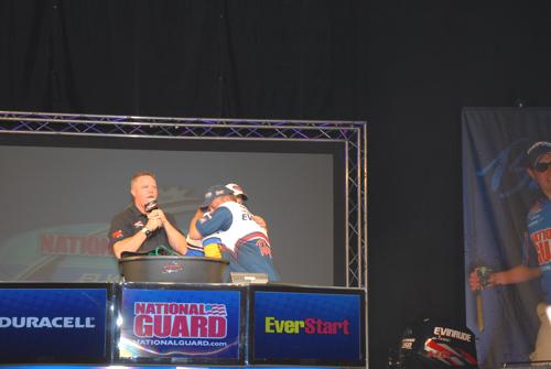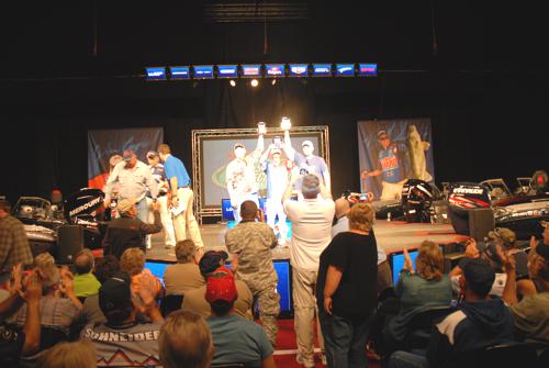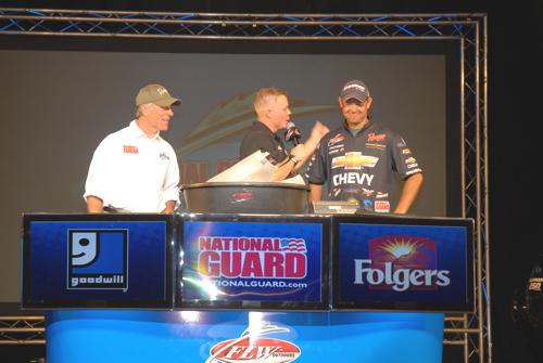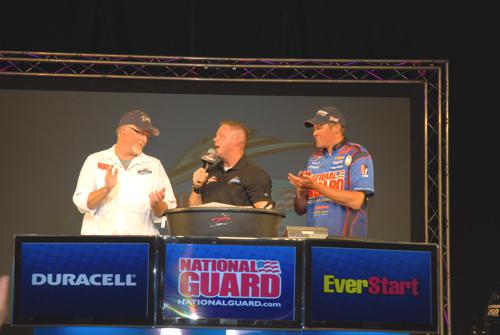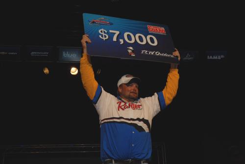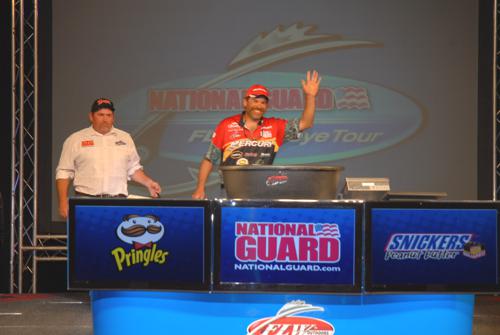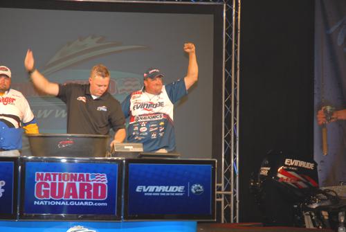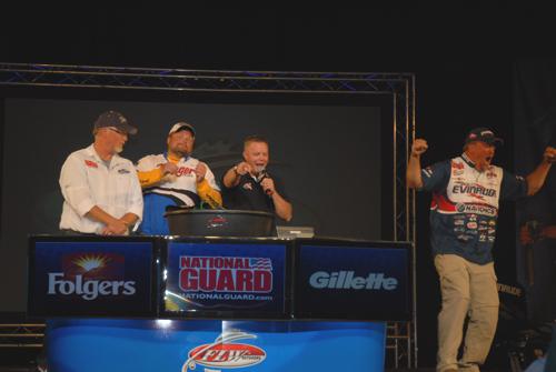 Member Posts: 34 | Navionics Pro, Tommy Skarlis maintains his dominance on the Missouri River in Bismarck, North Dakota buy owning Day Three's top spot. He was able to put together a quality bag that was enough to put his Co-Angler for the day, Todd Dankert in the hot seat for the 2011 FLW Walleye Tour Championship Victory. Todd won and was elated to bring home $5000 plus $2000 of contingency money. Skarlis was emotional! "Today was about getting Todd in that winning position," Skarlis said misty eyed. "I have been apart of teams in the past where my co-anglers won the championship and it is the best feeling to see them proud of their accomplishment. Todd was a heckuva stick and I would be proud to share my boat with him again any day!" Skarlis maintains the lead over Walmart Pro, Dean Arnoldussen by just under 3 lbs. and tomorrow is sure to be a shoot out. The patterns that a lot of anglers have been finding their fish under are beginning to dry up, but Bill Shimota sits in third place. Mr. Consistent. "I have weighed just over 17 lbs each day and if I can do that again, I stand a really good chance at taking this home," says National Guard Pro, Bill Shimota. "I am not cashing the first place check just yet, but I am feeling good about tomorrow." 1st Tommy Skarlis 2nd Dean Arnoldussen 3rd Bill Shimota 4th David Andersen 5th Dan Stier 6th Chris Gilman 7th Keith Kavajecz 8th Kevin Carstensen 9th Tom Kemos 10th Mark Courts WalleyeFIRST Tournament coverage is brought to you by Lund Boats, Mercury Marine, Lowrance and JJ Keller Fishing Team/The Reel Shot! The final day of the FLW Walleye Tour Championship begins tomorrow at 8 AM and is sure to the most exciting day of the season for the remaining Top-10 pros. Be sure to tune in tomorrow for more morning update and final weigh-in coverage beginning at 5 PM (CST) LIVE at the Bismarck Civic Center in downtown Bismarck, North Dakota. Attachments ---------------- Waiting to weigh.jpg (12KB - 156 downloads) Shimota.jpg (22KB - 129 downloads) National Guard Champs.jpg (28KB - 142 downloads) Keenan AOT.jpg (18KB - 132 downloads) Kavajeczx.jpg (23KB - 130 downloads) Jason.jpg (26KB - 124 downloads) Fish 1.jpg (20KB - 127 downloads) Dean fish.jpg (21KB - 128 downloads) Skarlis 1.jpg (23KB - 105 downloads) SKarlis 3.jpg (19KB - 123 downloads) Skarlis 4.jpg (16KB - 123 downloads) Skarlis' co wins.jpg (19KB - 135 downloads) Co Check.jpg (12KB - 122 downloads) | ||