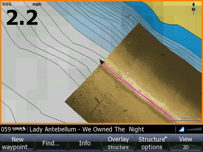 Member Posts: 1991 | Chris Meyer recorded this on Leech Lake on Buckmans Hump. You can overlay Structures Scan over a mapping chart(Structure Map), you can easily pick out cool features. You can also record and save images to make your maps. Here is imager that was captured. Attachments ---------------- 1323529271_LowranceStructureMap-1.jpg (24KB - 197 downloads) | ||||