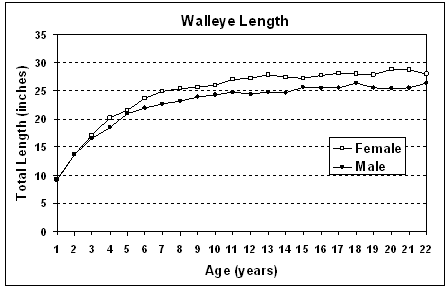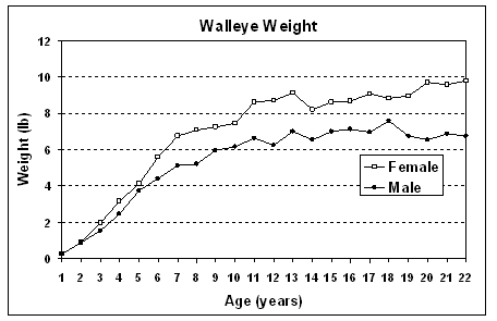 Member Posts: 1195 Location: Orland Park, IL | In all the bay of quinte trips, we caught 1 tagged fish. It was released, however, we followed up with the MNR to get some more information about the fish. See below. Thought it was interesting. ==================================================== Below are some graphs of walleye length and weight at age for your interest. These measurements were made on over 2100 walleye caught during the last 5 years in our routine index netting programs in the Bay of Quinte and eastern Lake Ontario. These fish were measured during the summer months. Fish caught at other times of year would have significantly different WEIGHT at the same AGE. For example, fish caught in late fall and early winter are heavier than those caught in the summer. Also, these lengths and weights are averages and individual fish can be bigger or smaller than the average at any given age. A 10 to 11 lb fish in the summer is huge and equivalent to a 12 lb plus fish in the fall or winter. A fish greater than 32 inches total length is huge at any time of year. Females are larger than males. Males mature one year sooner than females and this accounts for the growth difference. Most males begin to mature at age 3 years and spawn for the first time at age 4 years. Most females spawn for the first time at age 5 years. Your tagged fish was likely about 5 years-old when tagged; that would put it at about 17 years-old when you caught it. I have seen male fish as large as your fish but most likely it was a female based on its size. Your fish was caught and tagged at Witlow Point which is located just inside Hay Bay (see map below). So, that’s not too far from where you caught the fish. But remember, mature walleye migrate to Lake Ontario for summer months then return to the Bay of Quinte in the fall and winter to spawn in the spring. James A. Hoyle, Assessment Biologist Lake Ontario Management Unit Ontario Ministry of Natural Resources PS fish was tagged in Haybay. We caught him east of Glenora, north side of lake, second point. Edited by Mark Komo 2/16/2012 8:37 AM Attachments ---------------- Walleye Length BOQ.gif (5KB - 210 downloads) Walleye Weight BOQ.gif (5KB - 212 downloads) Haybay.gif (126KB - 196 downloads) | ||