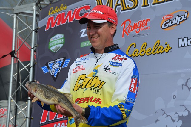 Location: Rhinelander | Jeffery Evans and Benjamin Baune hold a pound and three quarter lead over second place Ahrens and Ahrens in what amounts to a shoot out at the 2012 Spring Valley MWC. One hundred eleven limits were weighed today, mostly Saugers, and the vast majority of the baskets weighed in at seven to ten pounds. Less than two pounds separate tenth to seventy fifth place. Any 'kicker' fish, walleye or sauger, can easily launch a team in the middle of the pack into first tomorrow if caught with an average four fish remained of cookie cutter saugers. Rain form the Chicago area caused runoff and dirtied up the water today, which is what most of the teams said caused the slowdown in the bite and disappearance of quality fish. Every technique possible seemed to be in play today, but trolling was employed by more anglers than usual according to the stage reports. Third place is held by Shimota and Stasney with 10.61. Fourth is Hausler and Clemmons with 10.52, and fifth is Richards and Miller with 10.52. Rounding out the top ten: 6- Pape & Pankowski 7- Kolb & Kopf 8-Lahr & Skarlis 9-Chenier & Chenier 10-Yohe & Brandt Morning coverage to begin about 8 am tomorrow. WalleyeFIRST tournament coverage is brought to you by Lund Boats! Attachments ---------------- DSC_0082 (Copy).JPG (118KB - 120 downloads) DSC_0108 (Copy).JPG (112KB - 106 downloads) DSC_0090 (Copy).JPG (130KB - 111 downloads) DSC_0104 (Copy).JPG (113KB - 118 downloads) DSC_0117 (Copy).JPG (137KB - 109 downloads) DSC_0171 (Copy).JPG (127KB - 109 downloads) DSC_0144 (Copy).JPG (104KB - 116 downloads) DSC_0138 (Copy).JPG (109KB - 118 downloads) DSC_0255 (Copy).JPG (93KB - 111 downloads) | ||
