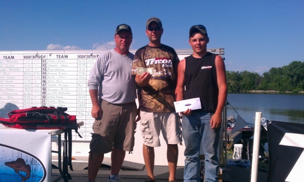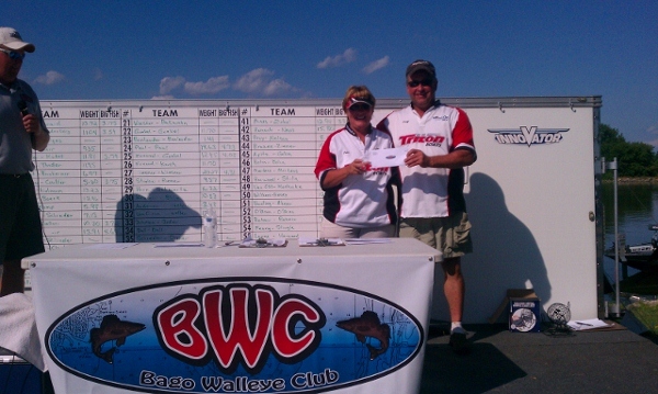Member Posts: 67 | Pl B# T# Name 1 Name 2 Fish DFish Fh Wgt Tm Wgt Tm Pt BFh Wt 1 27 14 Jason Wiesner Josh Wiesner 5 0 20.27 20.27 65 4.31 $2425 + Triton Gold $7000 2 24 28 Pauly Paul Cheryl Paul 5 1 19.88 19.63 64 4.73 $1375 3 36 41 Miles Mertens Jeff Brauer 5 1 18.86 18.61 63 $825 4 29 8 Wayne Horn Gorden Schwarz 5 0 16.32 16.32 62 $550 5 46 69 Albert Bohn Steven Bohn 5 1 16.32 16.07 61 3.92 $450 + Highest Boat Doc finisher $100 6 14 32 Jon Nobel Karen Hendrix 5 5 17.16 15.91 60 4.69 $375 7 42 43 Tom Hoinacki Derek Navis 5 2 16.3 15.8 59 $325 8 39 54 Pam Giese Greg Tabbert 5 3 15.9 15.15 58 0 $275 9 32 16 Bill Van Ornum Chris Mueller 5 1 15.36 15.11 57 $245 10 51 72 Dave Harding Robert Ahner 5 0 14.67 14.67 56 $220 11 40 68 Bill Schneider Kevin Hoppe 5 3 14.63 13.88 55 3.83 $200 12 1 31 Jeremy Jaber Garick Gerard 5 0 13.72 13.72 54 3.75 $175 13 45 49 Louie Apitz Buck Gehm 5 0 13.39 13.39 53 14 57 74 Jim Erdman Jeremy Hurst 5 0 13.37 13.37 52 15 9 7 Kyle Harmsen Rick Kielmann 5 2 13.73 13.23 51 16 10 27 Wayne Gregor Dale Boeck 5 3 13.71 12.96 50 17 41 46 Mike Maas Eric Zinkel 5 0 12.94 12.94 49 3.88 18 52 44 Mark O'Brien Michael O'Brien 4 0 12.89 12.89 48 19 38 50 Jon Boedeker Brad Vetter 4 3 13.5 12.75 47 5.71 20 49 61 Dave Van Oss Troy Koehnke 5 2 13.15 12.65 46 21 25 35 Ryan Freund Steve Goebel, Sr 5 1 12.7 12.45 45 4.08 22 50 71 Alex Wilkens Jake Hesey 5 0 12.07 12.07 44 23 18 17 Matt Kissinger Bruce Donner 5 2 12.56 12.06 43 3.88 24 6 5 Dave Theder Tim Theder 5 1 12.2 11.95 42 25 56 73 Jason Muche Mark Hanson 5 2 12.43 11.93 41 26 5 18 Travis Trepanier Dave Koball 5 0 11.81 11.81 40 27 22 30 Stephen Goebel, Jr Jason Goebel 5 0 11.7 11.7 38.5 27 26 12 Sean Freund Greg Karch 5 0 11.7 11.7 38.5 29 17 26 Jim Hughes Jim Forbes 5 0 11.65 11.65 37 30 16 1 Brad Schrauth Jeremy Clark 5 3 12.17 11.42 36 31 48 59 Randy Harwood Scott Stille 5 0 11.13 11.13 35 32 2 11 John Mills Todd Brandenburg 5 1 11.29 11.04 34 3.59 33 37 48 Gordy Rose Steven Burns 5 1 11.27 11.02 33 34 30 19 Justin Krueger Aaron Bilitz 5 0 10.53 10.53 32 35 44 53 David Brazee Jason Ziemer 5 1 10.65 10.4 31 36 13 3 Jerrod Meinen Michael Gallgan Sr. 4 1 10.55 10.3 30 3.72 37 34 33 Bill Ball Nick Ball 5 0 9.98 9.98 29 38 19 34 Brain Pluim Harlan Pluim 5 0 9.79 9.79 28 39 47 70 Patrick Mertens Joe Mertens 5 1 9.86 9.61 27 40 28 22 Larry Strelow Matt Riemer 5 0 9.57 9.57 26 41 54 55 Mike Feurig Justin Stingle 4 0 9.46 9.46 25 3.73 42 4 21 Rick Kerr Jason Kerr 5 0 9.35 9.35 24 43 35 36 Jason Schneider Joey Diener 5 0 9.15 9.15 23 44 43 38 Matt Prey Travis Nelson 5 2 8.68 8.18 22 45 53 62 Jeff Rahmer Mandi Rahmer 5 1 7.7 7.45 21 46 12 23 Greg Strehlow Casey Schneider 4 1 7.38 7.13 20 47 7 6 Jim Feucht Thomas Bornheimer 4 0 6.77 6.77 19 48 20 4 Mike A. Gallgan Stuart Wells 2 0 6.02 6.02 18 49 11 20 Tom Kamp Mike Kamp 4 1 6.23 5.98 17 50 8 15 Dean Dittberner Steve Coulter 2 0 5.6 5.6 16 3.75 51 59 76 Kevin Smith Mike Karempelis 3 0 5.18 5.18 15 52 61 51 Larry Rising Glen Rising 2 0 4.88 4.88 14 53 31 9 Steve Anderson Bob Getschow 2 0 3.48 3.48 13 54 23 24 Scott Bonlander Kris Bonlander 1 0 1.41 1.41 12 55 3 29 Tom Moulton Jeff Zillges 0 0 0 0 5.5 55 15 25 Chris Schrader Zach Schrader 0 0 0 0 5.5 55 21 13 Donald Wiesner Jeff Ballwahn 0 0 0 0 5.5 55 33 10 Erik Johnson James Jodar 0 0 0 0 5.5 55 55 58 Jake Lapine RJ Harwood 0 0 0 0 5.5 55 58 75 Chris Boucher Jeremy Thull 0 0 0 0 5.5 55 60 77 Kyle Pawelkewicz Tyler Wegner 0 0 0 0 5.5 55 62 2 Rob Teske Rich Stadler 0 0 0 5.5 Big Fish BF Pot Jon Boedeker Brad Vetter 5.71 $390 Pauly Paul Cheryl Paul 4.73 $190 Other prizes given away include 4 bottles of Mercury Premium plus, 3 bottles of Mercury Quick Care, 3 bottles of Mercury Quick Clean, 4 Mercury shirts, Boat Doc prizes of electric Rapala knife kit and Rapala pliers kit, 2 solar bat sunglasses from The Walleye Federation, smallest 5 fish limit of $100 Critters gift certificate, lowest placing Triton team present 2 Triton life jackets, Big eye custom bait kit, Blanks supper club gift certificate, Wendt’s on the lake gift certificate, Woodeye bar and grill gift certificate, Fat Boys bar and grill gift certificate, Sargento cheese gifts and Johnsonville sausage gift packs. | ||