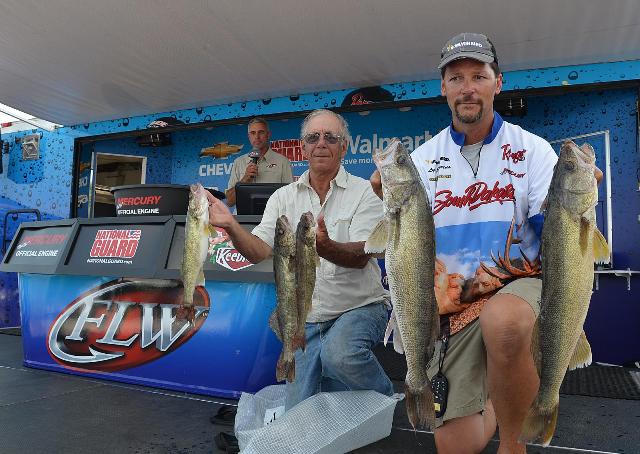 Location: Rhinelander | Extreme heat and very little wind greeted anglers today for the first day of the National Guard FLW Walleye Tour on Lake Oahe presented by Mercury. The 96-degree temperature had little to no effect on the bite, though, as walleye pro Lynn Jurrens of Watertown, S.D., and his co-angler, Lowell Joy of Bemidji, Minn. jumped to the top of the leaderboard after bringing in a five-walleye limit. The duo weighed in 17 pounds, 11 ounces to take the top spot on day one of the third walleye event of the season being held in Pierre, S.D. The pair now holds a slim 8-ounce lead over the second-place duo of Chevy pro Jason Przekurat of Stevens Point, Wis., and his co-angler, Kevin Yancey of Newport, Mich., who brought a five-walleye limit weighing 17 pounds, 3 ounces to the scales Thursday. The top of the leaderboard is still extremely tight, as only 2 pounds, 5 ounces separates first place from 10th. This tournament features 103 of the best walleye pros in the world competing for a top award of $63,000, while the 103 co-anglers are casting for an award of $10,500. “We had to be very patient out there today,” said Jurrens, who has more than $54,000 in career FLW earnings and recorded a ninth-place finish in the Oahe event last year. “We had to go to our third different presentation until we started catching the right fish. That’s pretty normal for Lake Oahe, though. We started out the day pitching jigs, and then we did some rigging. We were able to catch some slot fish, which was very important because it allowed me to stay in the big fish area. Then we went to Plan C, and we were finally able to connect with the two big girls. “We probably caught 50 to 60 fish throughout the day today,” Jurrens continued. “We had to go through a lot of little ones to upgrade our slot fish. There was no one time that was better, though. The bite was there all day long, which makes for a fun day. The weather was flat calm and very, very warm today. We were really targeting all different depths, and we caught fish as shallow as 5 feet to as deep as 40 feet. “I’m satisfied with my day, because practice was very challenging out here,” Jurrens went on to say. “The fish are searching for forage right now, and there is really not a lot of forage here. Finding the right areas was really tricky. You can go to an area for three days in a row and find nothing and then on the fourth day the fish show up. The fish are really on the move looking for something to eat, and that made it tough.” As is the norm for FLW Walleye Tour events, Jurrens did not want to get into the specifics of his pattern after the first day of competition, but promised to reveal his technique Friday if he had the same success. “My game plan for tomorrow will be more of the same,” he said. “I’m very confident because I’m fishing four different patterns right now, and I’m not afraid to switch it up after 20 or 30 minutes if I think I need too. I would love to fill everyone in on my whole game plan, and I will. After day two, it’s game on.” The top 10 pros and co-anglers after day one on Lake Oahe are: 1st: Lynn Jurrens, Watertown, S.D., and Lowell Joy, Bemidji, Minn., five walleyes, 17-11 2nd: Chevy pro Jason Przekurat, Stevens Point, Wis., and Kevin Yancey, Newport, Mich., five walleyes, 17-3 3rd: Ryan Jirik, Rhinlander, Wis., and Col. Scott St. Sauver, Little Falls, Minn., five walleyes, 17-1 4th: Paul Steffen, Pierre, S.D., and Craig Salmonson, Timmons, Ont., five walleyes, 16-15 5th: Curt Olivier, Yankton, S.D., and Chad Balka, Schererville, Ind., five walleyes, 16-9 6th: Brian Regelin, Cozad, Neb., and Dale Janota, Gillette, Wyo., five walleyes, 16-6 7th: John Campbell, Marco Island, Fla., and Kenny Brenner, Moline, Ill., five walleyes, 16-1 8th: National Guard pro Mark Courts, Harris, Minn., and Keith Keivens, Toledo, Ohio, five walleyes, 15-13 9th: Danny Plautz, Madison, Wis., and Christopher Hanson, New Hope, Minn., five walleyes, 15-7 10th: Chad Schilling, Akasaka, S.D., and Charles Fields, Pierre, S.D., five walleyes, 15-6 For a full list of results visit FLWOutdoors.com. Overall there were 510 walleyes weighing 1,213 pounds, 4 ounces caught by 103 boats Thursday. The catch included 99 five-walleye limits. In Walleye Tour competition, pro and co-anglers are competing for valuable points in the hope of qualifying for a shot at the 2012 National Guard FLW Walleye Tour Championship which will be held on the Mississippi River in the Quad Cities Oct. 25-28. Anglers are also vying for the coveted Angler of the Year title, which earns them a place in the 2013 Walleye Tour Championship, as well as $10,000 for the pro and $2,500 for the co-angler. Anglers will take off from the Spring Creek Resort & Deep Water Marina located at 28229 Spring Creek Place in Pierre at 7:00 a.m. each morning. Thursday and Friday’s weigh-ins will be held at the marina beginning at 3:00 p.m. Saturday’s final weigh-in will be held at the Walmart located at 1730 North Garfield Road in Pierre beginning at 4 p.m. Fans will be treated to the FLW Expo at Walmart on Saturday from noon-4 p.m. prior to the final weigh-in. The Expo includes the opportunity to interact with professional anglers, a trout pond, and interactive games and activities. The NPAA will be offering a free Youth and Family Fishing Clinic beginning at 2:30 p.m. Prizes, including rods & reels, will be given away after the clinic. All activities are free and open to the public. Coverage of the Lake Oahe tournament will be broadcast in high-definition (HD) on NBC Sports Network when “FLW” airs October 14 from 1-2 p.m. ET. “FLW” is hosted by Chip Leer and is broadcast to more than 559 million households worldwide, making it the most widely distributed weekly outdoors-sports television show in the world. For complete details and updated information visit FLWOutdoors.com. For regular updates, photos, tournament news and more, follow us on Facebook at F