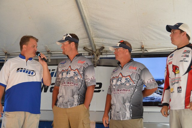 Location: Rhinelander | The morning predictions that the bite would be soft after a major cold front moved through turned out to be fact. There were some impressive weights none the less, but none that met upper expectations from the Bay of Green Bay. Trolling spinners and cranks are the presentations in play, and it seemed according to a few reports from those who would talk about their day that positioning on a pod of fish and waiting for them to go made the difference between 7 and a lower number of CRRd walleyes today. Cardenas and Mickish lead with 46.4, slightly less than a 7 pound average. In second are Omelina and Hogan with 43.01, three pounds back. Okada and Okada are in third just a couple hundredths of a pound out of second. Kavajecz and Kavajecz are in fourth, Samson and Stoegbauer are in fifth, Keller and Eaton are in sixth, Ellman and Ellman in seventh, Kolinski and Hornes in eighth, Davis and Woyak in ninth, and Dempsey and Goecks round out the top ten. Expect the entire leader board to scramble tomorrow if predictions from the stage hold. Expectations are high that the bite will improve to pre-fish levels quickly as the weather stabilizes. Each Pro Team is accompanied by a Co Angler. There was concern that the Co would not have much to do; those concerns proved to not be an issue, and the Teams reported hard work by all three anglers in the rig despite a slower bite. The field leaves tomorrow morning at 7:30 AM for Day Two competition, and will leave the water at 3:30 PM. The AIM weigh in will begin at 5 PM. Join us at www.aimfishing.com tomorrow throughout the day as live reports come in off the water! Attachments ---------------- 16_Cardenas6 (Copy).JPG (135KB - 139 downloads) 16_Cardenas14 (Copy).JPG (102KB - 138 downloads) 16_Cardenas18 (Copy).JPG (132KB - 138 downloads) DSC_0027 (Copy).JPG (113KB - 145 downloads) DSC_0124 (Copy).JPG (105KB - 148 downloads) DSC_0129 (Copy).JPG (112KB - 138 downloads) | ||