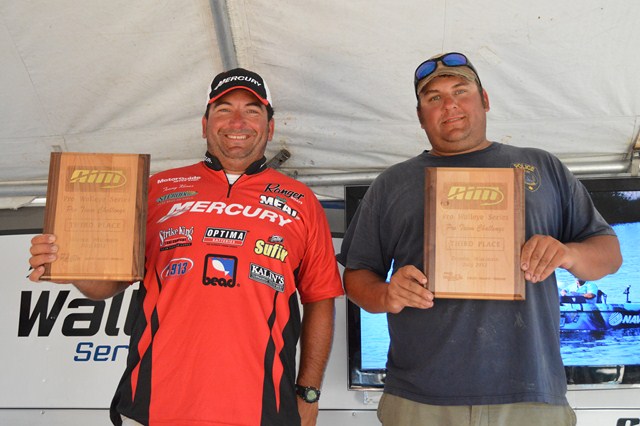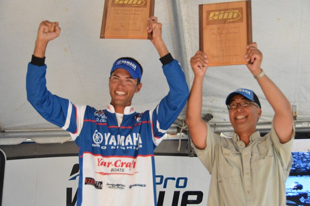 Location: Rhinelander | Okada and Okada came from behind to take the AIM Pro team Challenge Title on the Bay of Green Bay out of Oconto for their first major win. The father/son team had fished the MWC for several years, and were reunited at the AIM Pro team Challenge to take home a check for $23,000.00. Team Okada CRR'd 132.52 pounds to beat a hard charging Blosser/Blosser team by almost 2 pounds. The final weight for today for the Okadas was 53.09, caught trolling cranks to avoid the perch and other smaller fish prevalent in the area they were fishing. Blosser and Blosser bumped Team Kemos into third, finishing with 130.61. Tommy and Telly Kemos weighed in a virtual CRR weight of 124.48. Josh and Robert Blosser were fishing close to team mates Okada and Okada, and were well ahead of them early on according to reports from the stage. The Okadas 'ground it out' throughout the day, putting enough big fish in the net to force the Blossers out of the win. team Blosser took home a check for $10,000.00 for the second place finish, and Team Kemos took home $7500.00 Fourth went to Dempsey and Goecks, fifth to Keller and Eaton, sixth to Leanna and Knowles, seventh to Cardenas and Mickish, eighth to Nicklash and Besaw, ninth to Schneider and Meisner, and Adler and Shoenwalder rounded out the top ten. Watch for the Team Okada winning interview to be up on the AIM website very soon. See the final standings at the AIM leaderboard at www.aimfishing.com. The AIM pro Challenge format was extremely well received, and reports are AIM may be considering the format for several events in 2013. One sentiment was unanimous; Oconto would be a preferred AIM pro team Challenge location again for next year. Attachments ---------------- DSC_0324.jpg (106KB - 183 downloads) DSC_0357 (Copy).JPG (119KB - 177 downloads) DSC_0356 (Copy).JPG (112KB - 195 downloads) DSC_0355 (Copy).JPG (104KB - 189 downloads) DSC_0354 (Copy).JPG (99KB - 195 downloads) DSC_0360.JPG (188KB - 182 downloads) | ||
