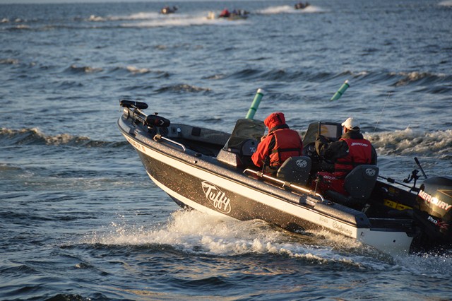 Location: Rhinelander | The weather did indeed change today as a front moved through during the night. Winds did a 180, and are forecast to be light today. All the Pros we talked to this morning were sure the bite would shift some, but that the fish would go and good weights will come to the scales. The winds are set to the NE at 6 to 10, so at least there should be some light chop. There was still some storm activity well off to the South during the launch. We didn't interview anyone who intends to change the game plan from Day One. It's going to be a shootout. Chad Schilling said he's catching so many big fish it's hard to leave the water, and he's enjoyed the fishing here so much he was always the last boat to the ramp during prefish. He was cautiously optimistic his bite will hold. We didn't see Ryan this morning; the launch is several miles from the take off point and it's difficult to find everyone with 4 ramps working and once launched, many stay on the water until take off. The weigh in will begin at about 3 PM Eastern, watch for a full report very soon after. WalleyeFIRST Tournament coverage is brought to you by Lund Boats and Mercury Outboards. Attachments ---------------- DSC_0001 (Copy).JPG (99KB - 222 downloads) DSC_0007 (Copy).JPG (101KB - 228 downloads) DSC_0011 (Copy).JPG (106KB - 230 downloads) DSC_0027 (Copy).JPG (93KB - 208 downloads) DSC_0047 (Copy).JPG (138KB - 210 downloads) DSC_0051 (Copy).JPG (102KB - 211 downloads) DSC_0121 (Copy).JPG (128KB - 210 downloads) DSC_0137 (Copy).JPG (124KB - 203 downloads) DSC_0142 (Copy).JPG (132KB - 187 downloads) DSC_0130 (Copy).JPG (94KB - 190 downloads) | ||