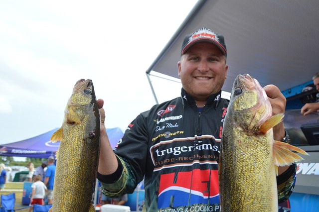 Location: Rhinelander | Korey Sprengel brought in the heaviest bag of the tournament at 28.06 to take the day two lead at 53.13. He has a bit better than a 2 pound lead over Ryan Dempsey, and just 3.5 pounds over third place Ross Grothe. The bite was definitely on today, and the shifting in the leaderboard shows it, especially in the top thirty. Fourth place is held by Pro Danny Pluatz, who was in at the docks early with a 26.09 pound basket. FLW Walleye Tour Angler Of the Year Lund/Mercury Pro Chad Schilling is in 5th place, 4 pounds 10 out of first. Chad smashed his way to the AOY win without really even thinking he had a real chance at the trophy, even though statistically, there was a near 5 way tie after yesterday. The Reel Shot Pro John Schneider is in 6th, Nick Schertz in seventh, Dusty Minke in 8th, Bill Shimota in 9th, and Derek Parker rounds out cut to the the final ten for tomorrow. The top ten will leave the docks out of Escanaba tomorrow morning at 7 AM. WalleyeFIRST coverage of the FLW Walleye Tour is brought to you by Lund Boats and Mercury Outboards. The rest of the standings are here: http://www.flwoutdoors.com/walleyefishing/walleyetour/tournament/20... Attachments ---------------- DSC_0380 (Copy).JPG (86KB - 177 downloads) DSC_0405 (Copy).JPG (131KB - 186 downloads) DSC_0046 (Copy).JPG (116KB - 187 downloads) DSC_0056 (Copy).JPG (128KB - 192 downloads) DSC_0126 (Copy).JPG (114KB - 179 downloads) DSC_0086 (Copy).JPG (124KB - 188 downloads) DSC_0390 (Copy).JPG (106KB - 184 downloads) DSC_0419 (Copy).JPG (124KB - 182 downloads) | ||