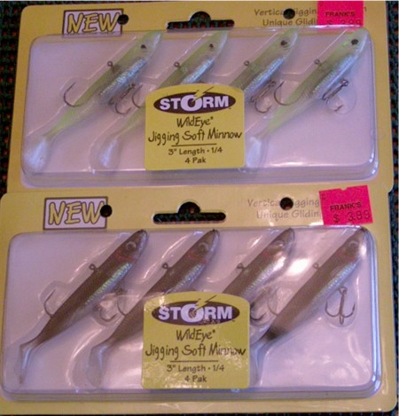 ![]() Member Posts: 2680 Location: Essexville, MI./Saginaw Bay. | Capt. Dan, I just got back from the St.Paul Ice fishing show myself. I saw the same Storm minnows you are talking about, but did not buy any today. I should have stopped and taken a harder look at them, but I assumed the internal weights had rattle beads in them. Do they? I think that would really make them the ticket. Jack. Ya know that didn't dawn on me, I didn't even shake them or anything to find out. The shape of the lead does look a little like those BB chamber gizmos though don't they? I've already put them in my ice fishing box on the 4 wheeler, so I'll have to wait until I put the chains on the tires tomorrow and I'll check. | ||